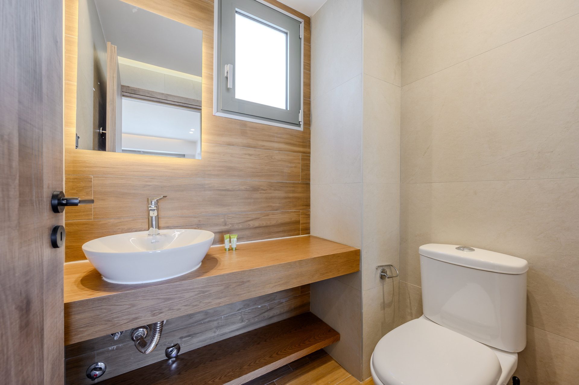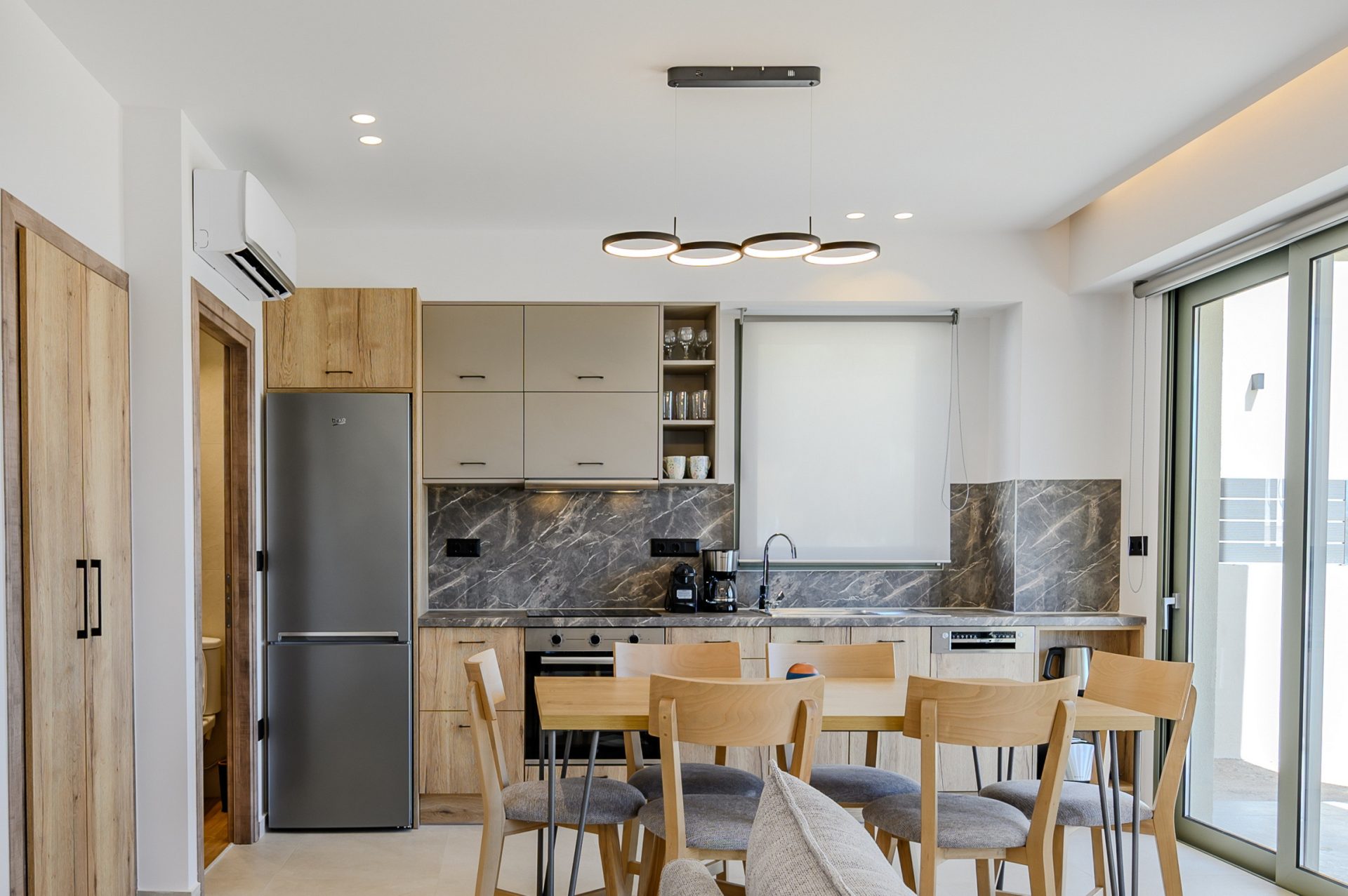As you enter the villa, you’ll be greeted by a thoughtfully designed ground floor. Here, you’ll find a spacious living room perfect for relaxation and entertainment, complemented by an open-plan modern kitchen. The kitchen is fully equipped with all the essentials, including a refrigerator, microwave, oven, freezer, dishwasher, and a variety of small appliances to make your stay comfortable and convenient.Furthermore there is a wc.